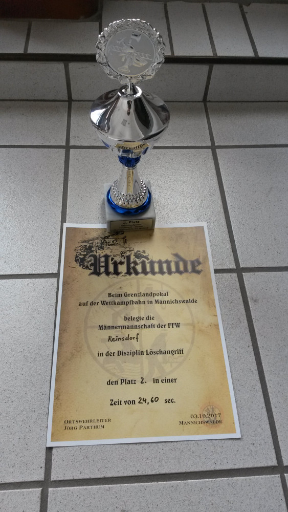 Am Samstag (07.10.) fand im Zuge des jährliches Herbstfest der 7. Pokal des Bürgermeisters im Löschangriff statt. Zu Gast waren 8 Wettkampfmannschaften aus Thüringen und Sachsen. Wie jedes Jahr ging die Wettkampfmannschaft aus Reinsdorf als erstes an den Start. Leider war deren Lauf wie das Wetter gewesen: ziemlich trist. Aufgrund von Problemen bei der Saugleitung reichte es nur für eine Zeit von 34,09 Sekunden. Mit dieser Zeit konnte nur der vorletzte, also 8. Platz errungen werden.