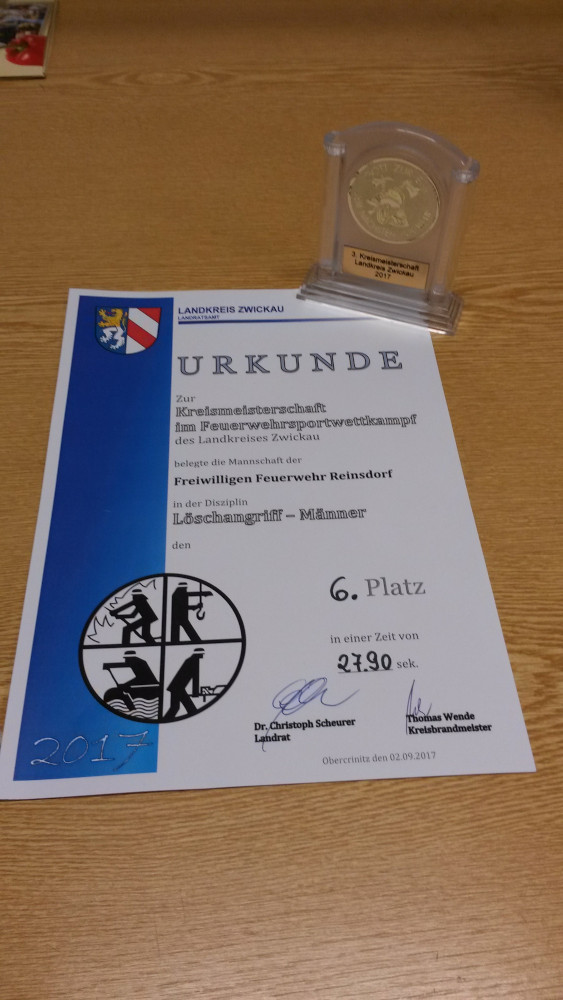 Zum ersten Wettkampf nach der Sommerpause waren die Reinsdorfer gestern in Obercrinitz zur Kreismeisterschaft des Feuerwehrsportwettkampfes. Hier kämpften 12 Männermannschaften und 2 Frauenmannschaften jeweils um den Pokal des Kreisbrandmeisters.