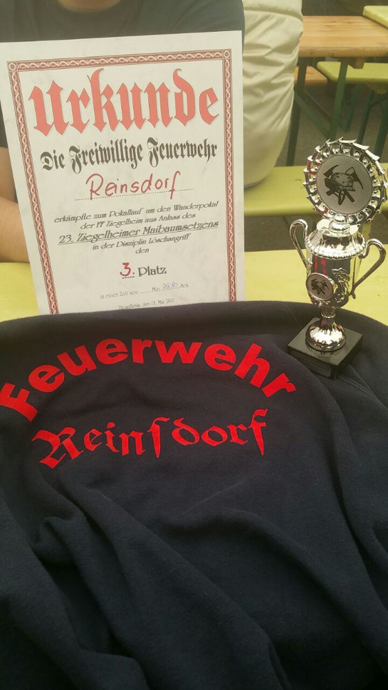 Zum Muttertag, am 14.05.2017, war die Wettkampfmannschaft zum 1. Wettkampf im Löschangriff in St. Egidien eingeladen. Bei sehr wechelhaftem Wetter traten 13 Mannschaften gegeneinander an. Diesmal lief bei den Reinsdorfern leider nicht alles ganz glatt. Es reichte allerdings für eine Zeit von 28,10 Sekunden. Damit landeten sie im Mittelfeld, auf dem 7. Platz.