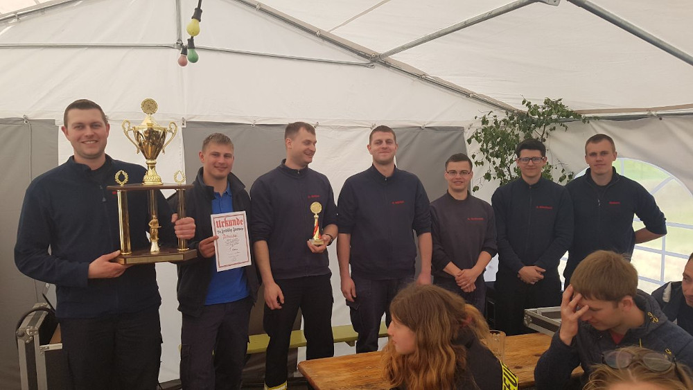 Bei traditionell herrlichem Frühsommerwetter waren wir gestern zum Quarksteinpokal in Niedercrinitz gewesen. Es traten 2 Frauen- und 13 Männermannschaften jeweils gegeneinander an. Wir starten als letzte der 13 Mannschaften und liefen eine Zeit von 26,84 Sekunden. Diese reichte für den 5. Platz. Den Sieg errangen die Kameraden aus Niederalbertsdorf mit 23,44 Sekunden.